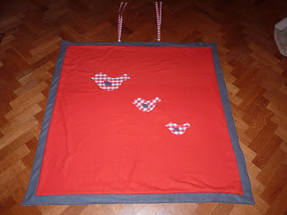 | Ook de linten er aan bevestigd zodat de deken netjes opgeruimd kan worden |